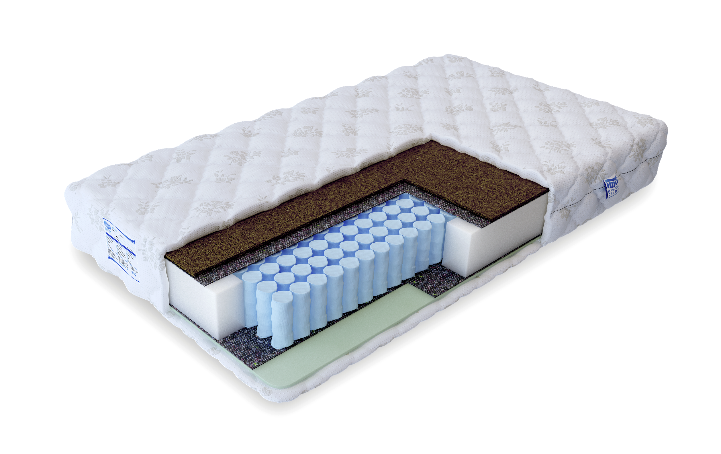 Съемный трикотажный чехол на молнии (100 гр. синтепон); Кокосовое волокно - 10 мм; Термоволокно - 3 мм; Спанбонд; S-500 Независимый пружинный блок - 180 мм; Спанбонд; Термоволокно - 3 мм; Eco Foam - 10 мм; Съемный трикотажный чехол на молнии (100 гр. синтепон); Характеристики Артикул: 1355 Бренд: Промтекс-Ориент Высота: 21 см (как измеряется ) Пружинный блок: S-500 (пружин на 1 сп. место) Жесткость верх: Умеренно жесткие Жесткость низ: Умеренно мягкие Нагрузка (Вес) на 1 спальное место: До 125 кг Количество пружин: 500 на спальное место Материал: ППУ и Кокос Гарантия: 36 месяцев