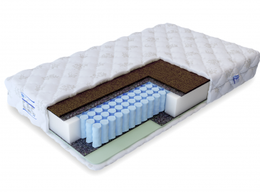 Жесткая сторона содержит натуральную кокосовую койру. Упругий слой грамотно поддерживает позвоночник и усиливает ортопедичность пружинной основы. С мягкой стороны проложена экопена, которая отличается высокими анатомическими качествами. Оба материала прекрасно пропускают воздух и не теряют своих свойств весь срок службы.