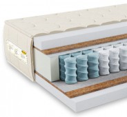 С двух сторон проложен бикокос. Твердый и упругий наполнитель обеспечивает правильную поддержку позвоночнику и усиливает ортопедичность пружинной основы. Бикокос не боится перепада температур, хорошо пропускает воздух и долго служит.