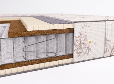 КОКОСОВАЯ КОЙРА – плита на основе прессованных волокон ореха кокосовой пальмы (длиной 4-8см). Перед тем, как использоваться в качестве наполнителя для матраса кокосовое волокно латексируется (пропитывается латексной пеной). Благодаря такой обработке существенно увеличивается срок его службы. Латекс образовывает на волокнах тонкую защитную плёнку, предотвращающую их разрушение даже при довольно сильных механических нагрузках. Таким образом, латексированное кокосовое волокно в течение длительного периода не подвержено крошению и износу.