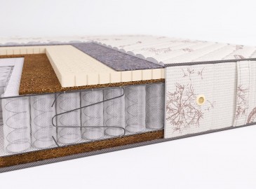 КОКОСОВАЯ КОЙРА – плита на основе прессованных волокон ореха кокосовой пальмы (длиной 4-8см). Перед тем, как использоваться в качестве наполнителя для матраса кокосовое волокно латексируется (пропитывается латексной пеной). Благодаря такой обработке существенно увеличивается срок его службы. Латекс образовывает на волокнах тонкую защитную плёнку, предотвращающую их разрушение даже при довольно сильных механических нагрузках. Таким образом, латексированное кокосовое волокно в течение длительного периода не подвержено крошению и износу.