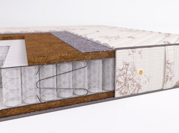 КОКОСОВАЯ КОЙРА – плита на основе прессованных волокон ореха кокосовой пальмы (длиной 4-8см). Перед тем, как использоваться в качестве наполнителя для матраса кокосовое волокно латексируется (пропитывается латексной пеной). Благодаря такой обработке существенно увеличивается срок его службы. Латекс образовывает на волокнах тонкую защитную плёнку, предотвращающую их разрушение даже при довольно сильных механических нагрузках. Таким образом, латексированное кокосовое волокно в течение длительного периода не подвержено крошению и износу.
