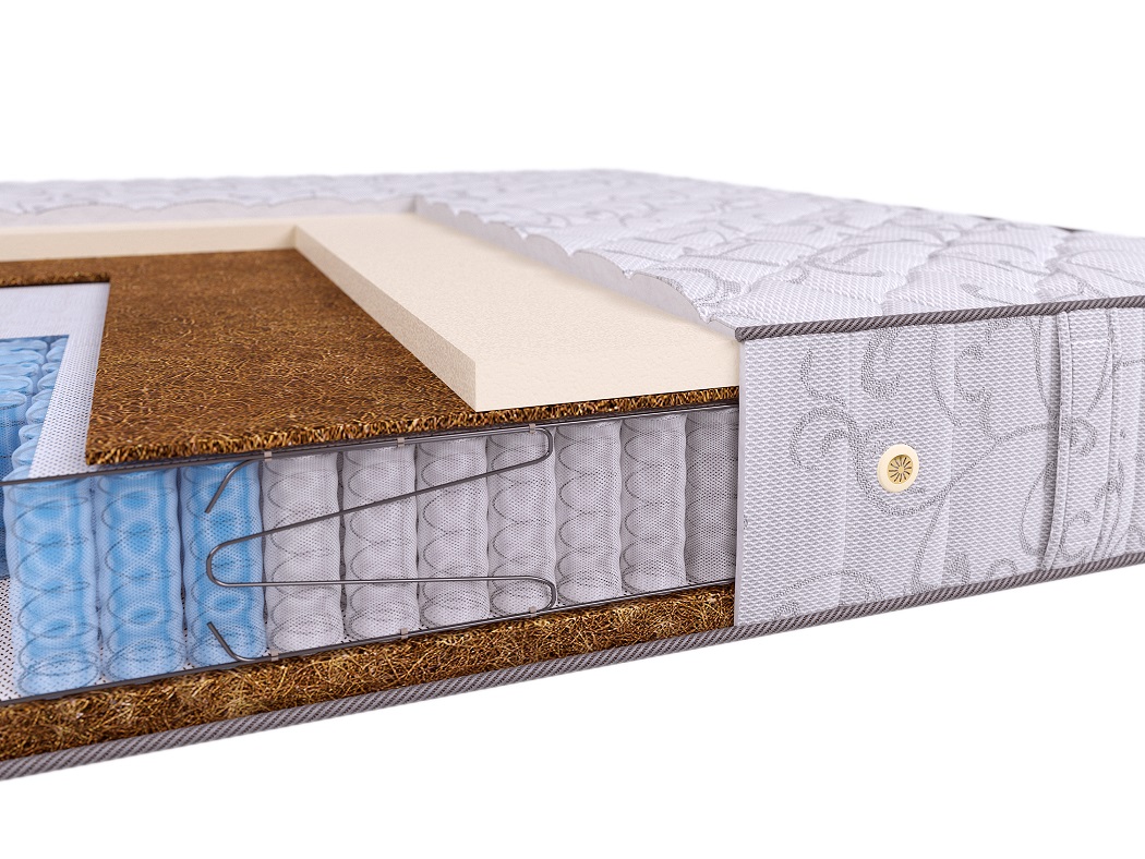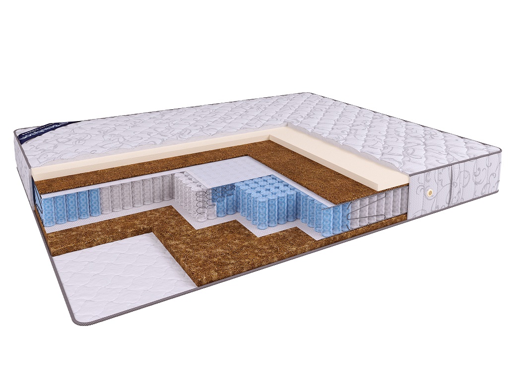 КОКОСОВАЯ КОЙРА – плита на основе прессованных волокон ореха кокосовой пальмы (длиной 4-8см). Перед тем, как использоваться в качестве наполнителя для матраса кокосовое волокно латексируется (пропитывается латексной пеной). Благодаря такой обработке существенно увеличивается срок его службы. Латекс образовывает на волокнах тонкую защитную плёнку, предотвращающую их разрушение даже при довольно сильных механических нагрузках. Таким образом, латексированное кокосовое волокно в течение длительного периода не подвержено крошению и износу.