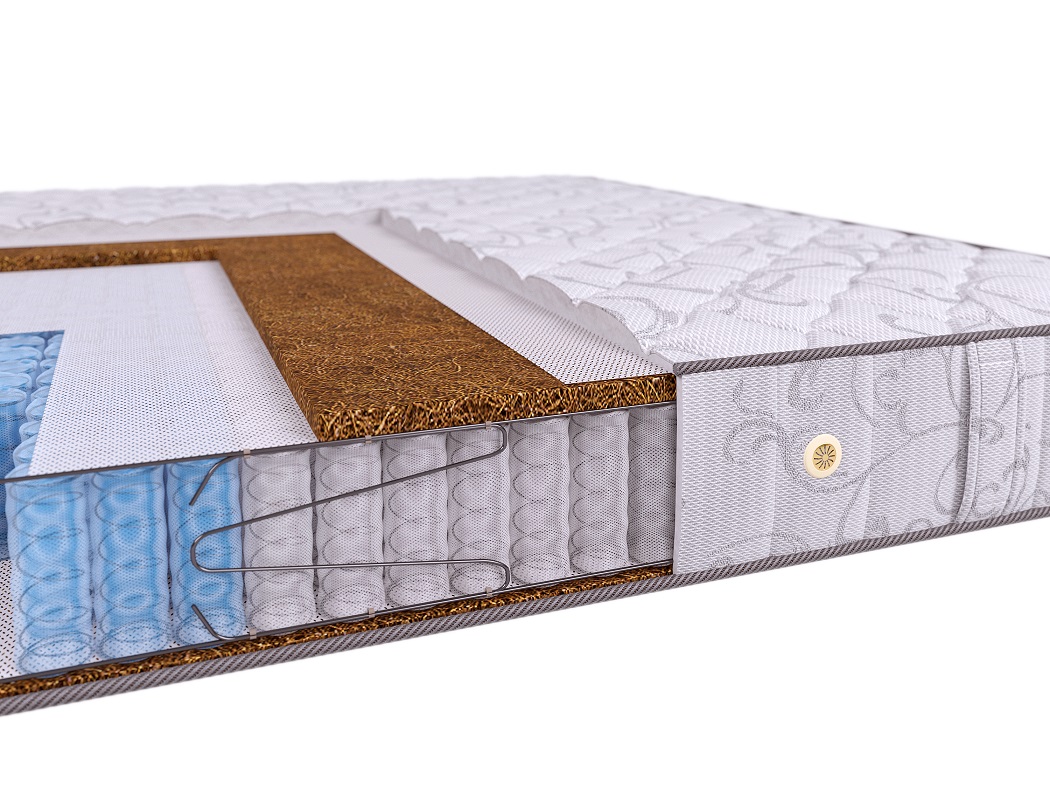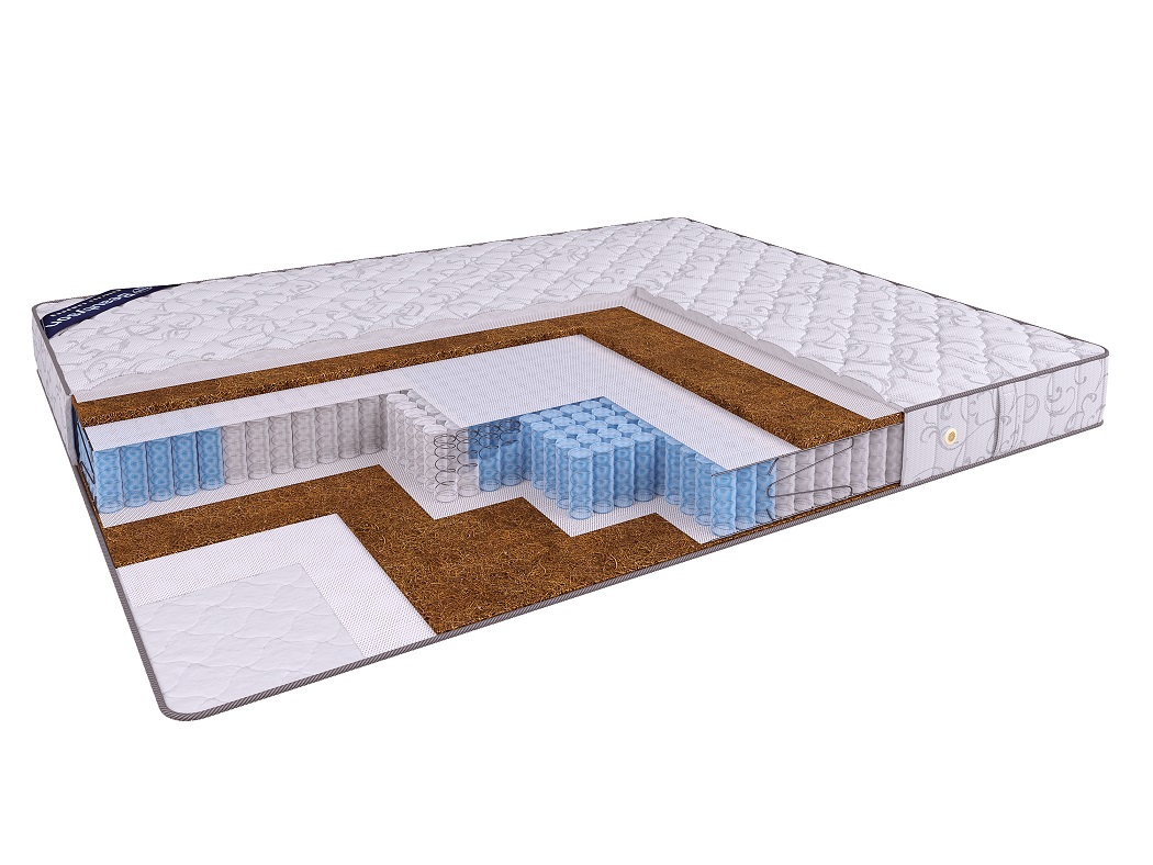 КОКОСОВАЯ КОЙРА – плита на основе прессованных волокон ореха кокосовой пальмы (длиной 4-8см). Перед тем, как использоваться в качестве наполнителя для матраса кокосовое волокно латексируется (пропитывается латексной пеной). Благодаря такой обработке существенно увеличивается срок его службы. Латекс образовывает на волокнах тонкую защитную плёнку, предотвращающую их разрушение даже при довольно сильных механических нагрузках. Таким образом, латексированное кокосовое волокно в течение длительного периода не подвержено крошению и износу.