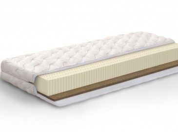 Ортопедический беспружинный матрас из натурального латекса с регулируемой степенью жесткости спального места. Для поднятия степени жесткости на одну из сторон латексного блока установлен слой кокосового волокна. Переворачивая матрас, можно менять степень жесткости спального места. Изготовлен без использования клея!