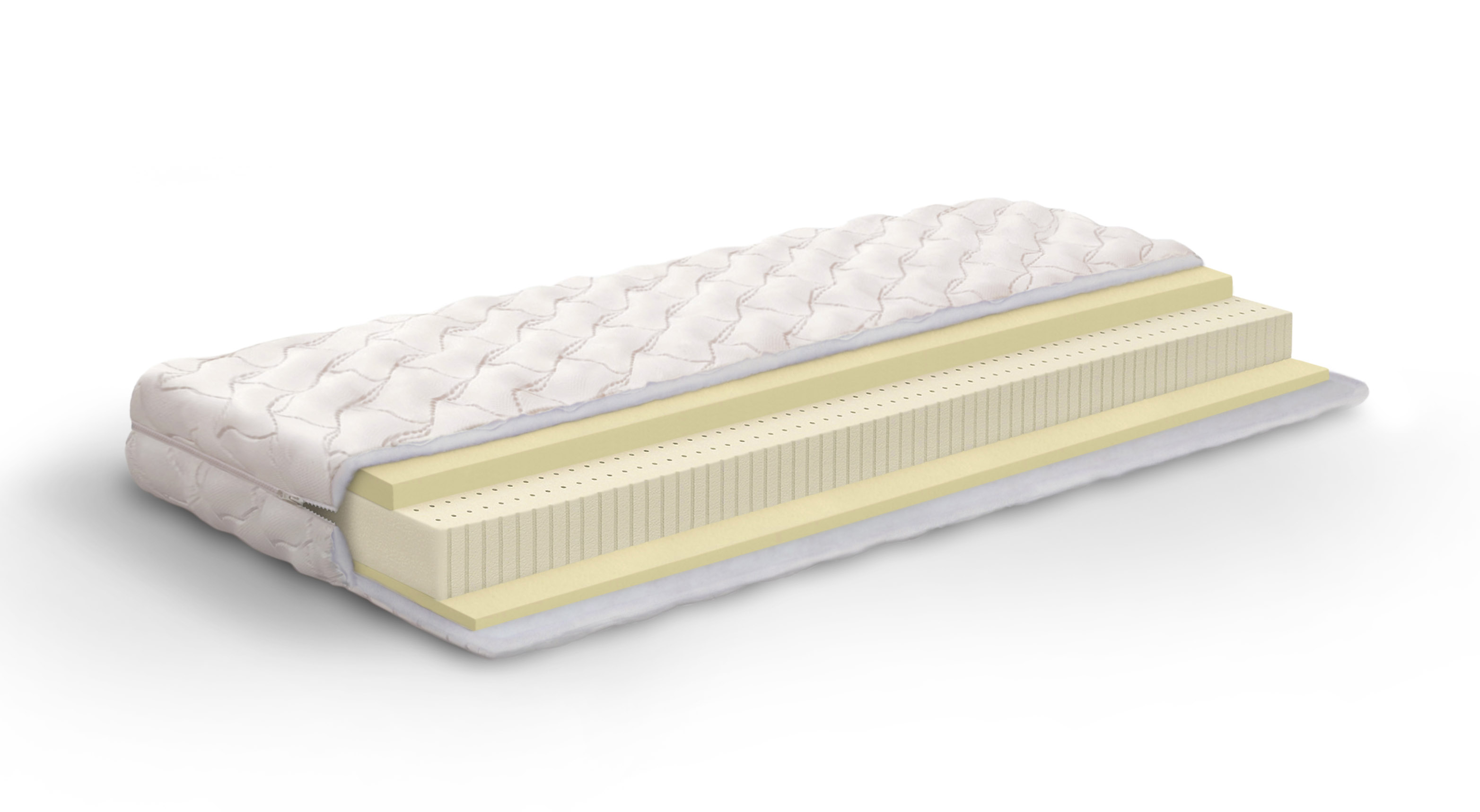 Ортопедический беспружинный матрас из натурального латекса с регулируемой степенью мягкости спального места. Для увеличения степени мягкости на каждую из сторон латексного блока установлен слой современного материала Memory Foam различной толщины. Переворачивая матрас, можно менять степень мягкости спального места. Изготовлен без использования клея!