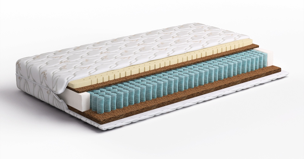 Двухслойный настил из натурального кокосового волокна придает матрасу высокую жесткость;