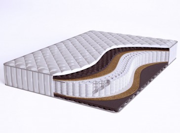 Основным наполнителем матраса является рельефный материал – airfoam massage. Он обладает расслабляющим и микромассажным эффектом, благодаря которому способствует улучшению микроцеркуляции крови в организме во время отдыха. Так же для улучшения ортопедического эффекта с двух сторон матраса положен слой латексированной кокосовой койры.