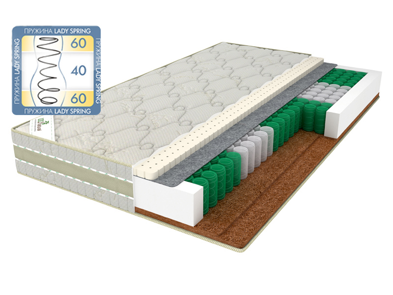 ТАИТИ - Разножесткий ортопедический матрас с основанием из 5-ти зонального блока независимых приталенных пружин Lady Spring.