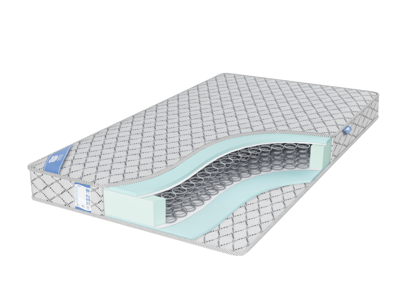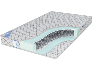 Простой пружинный матрас средней жесткости. В центре изделия пружинный блок «Боннель». Он состоит из сцепленных проволокой пружин. По краям – слои пенополиуретана.