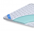 У спальной поверхности средняя жесткость. Ее составляет слой пенополиуретана. Он прекрасно держит форму и подстраивается под линии тела. И у пены хорошие воздухообменные качества.