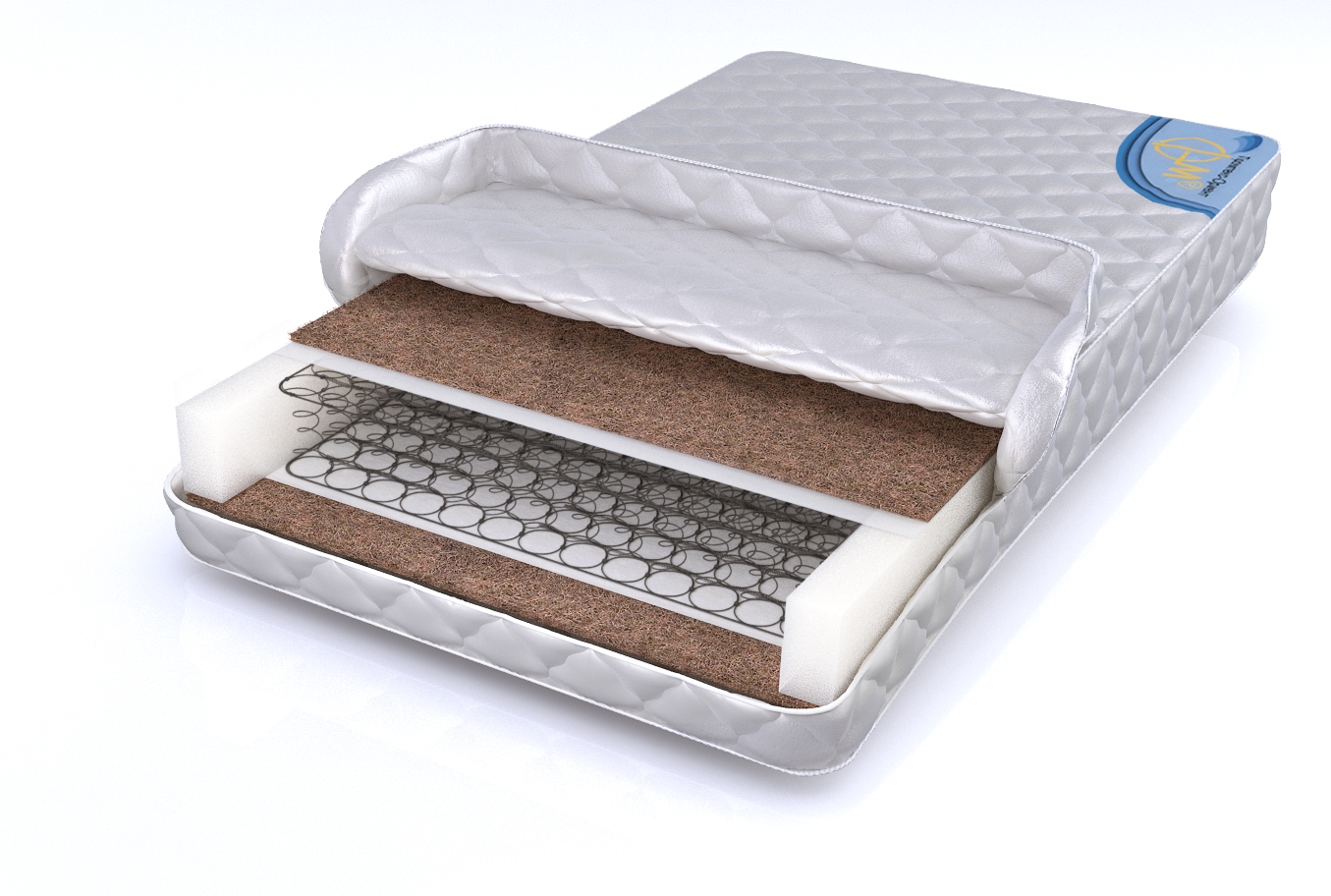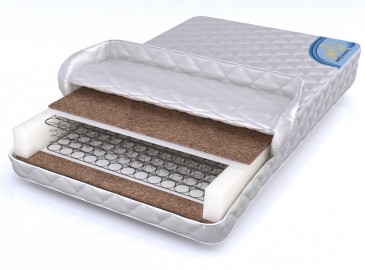 Основой матраса является блок «Боннель». Он состоит из стальных пружин, прочно скрепленных между собой. По обе стороны от пружинного блока находятся 2-сантиметровые слои латексной кокосовой койры. Благодаря им матрас приобретает дополнительную жёсткость, что способствует созданию спальной поверхности, полезной для спины.