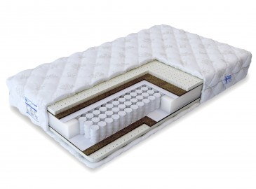 С двух сторон проложен одинаковый комбинированный наполнитель из латекса и кокоса. Натуральный латекс подстраивается под контур тела человека и придает конструкции анатомический эффект. Жесткий кокос делает поверхность упругой и усиливает свойства пружинного блока. Оба натуральных материала хорошо пропускают воздух и не накапливают влагу. Они долго служат и не теряют своих свойств весь срок эксплуатации.