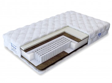 Обратите внимание на эту модель комбинированной жёсткости, она позволит вам менять уровень комфорта в зависимости от времени года, физического состояния или настроения. Спальное место средней жёсткости создаётся за счёт сочетания натурального латекса (3 см) и кокосовой койры (1 см), тогда как поверхность повышенной жёсткости - результат использования одной кокосовой койры (2 см). Все они выбраны в качестве наполнителей за натуральность, гипоаллергенность, долговечность и анатомические качества.