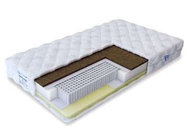 В этой модели поверхность повышенной жёсткости создаёт кокосовая койра, волокна которой выдерживают большой вес. Наполнитель из кокоса пропускает воздух, обеспечивает естественный теплообмен, благодаря чему жёсткую сторону часто используют в жаркое время года. Поверхность средней жёсткости формирует мемориформ, главное достоинство которого заключается в отсутствии обратного давления. По ощущениям это напоминает «невесомость».