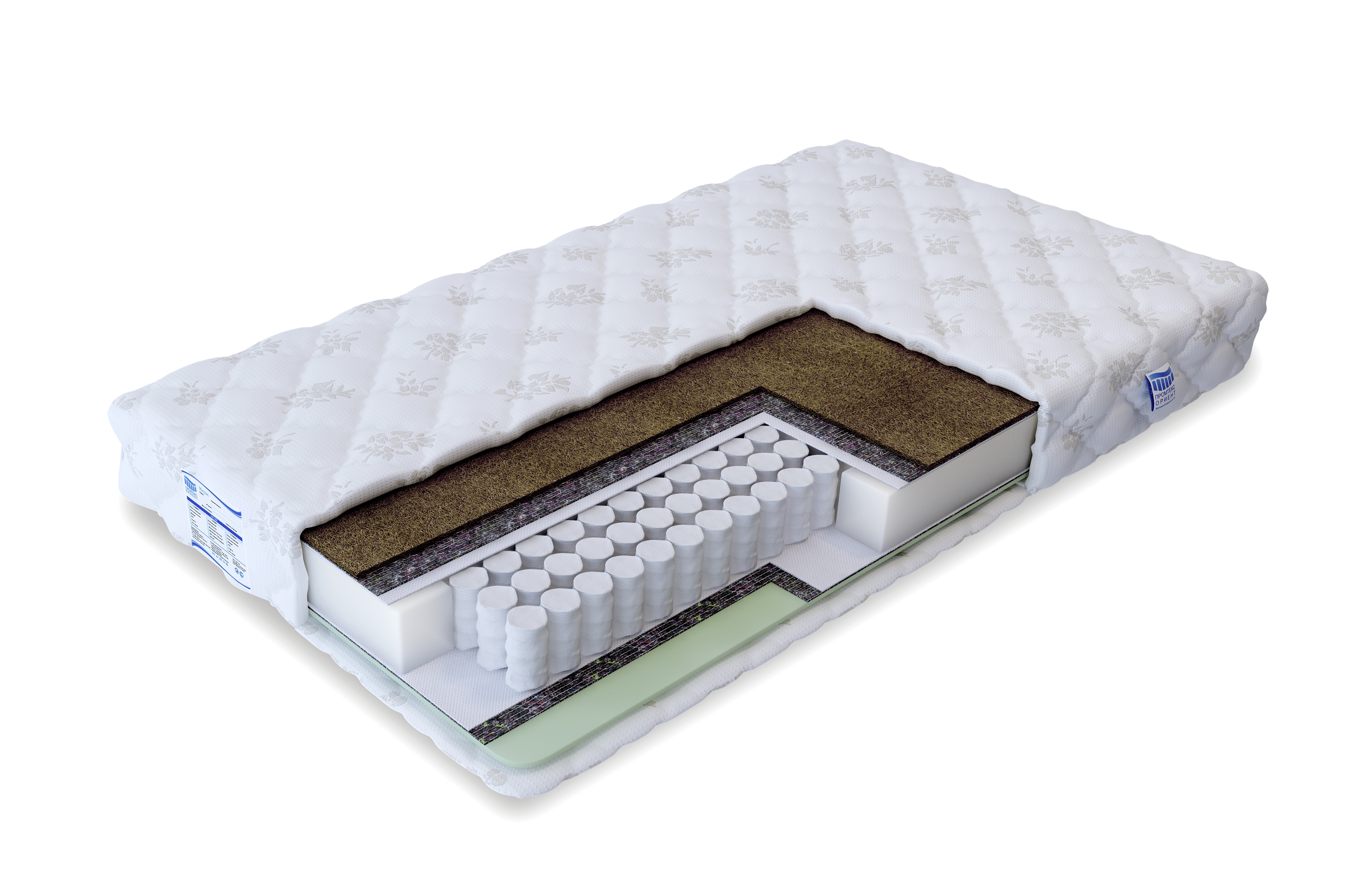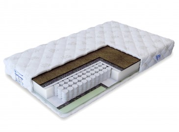 Мягкость одной стороне обеспечивает слой эластичной экопены, проложенный для защиты от пружин спанбондом. За жёсткость спальной поверхности со второй стороны отвечает настил из латексированной кокосовой койры. Как результат – правильное положение во время сна и качественный релакс.