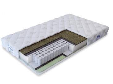 Последний обладает упругостью, благодаря чему ваше тело не будет «проваливаться» в матрас. Он поддерживает, стимулируя приток крови к мягким тканям. Жёсткую сторону создаёт комбинация из спанбонда и бикокоса нового наполнителя, состоящего из смеси кокосовых волокон и струттофайбера. Экологически безопасный бикокос поддерживает естественный влагообмен во время сна, что особенно важно в тёплое время года. Оптимальный микроклимат на поверхности матраса создаёт трикотажный чехол с объёмной стёжкой на синтепоне.