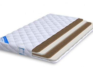 Эти наполнители отлично вентилируются и на протяжении длительного времени сохраняют свои свойства. Стороны матраса асимметричны и отличаются различной степенью жёсткости. Одна из них имеет повышенную жёсткость из-за верхнего слоя из кокосовой койры, другая – среднежёсткую из-за эколатекса. Благодаря этим материалам матрас становится прочным (с нагрузкой до 125 кг), долговечным и гипоаллергенным. Привлекательность внешнему виду обеспечивает трикотажный стёганый чехол, который легко снимается, поскольку в него вшита смотровая молния.
