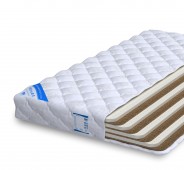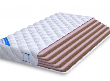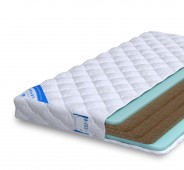 Верхний слой из экопены создаёт эффект работы пружин и обеспечивает поверхность средней жёсткостью, в то время как настил из тонкого кокосового волокна повышает жёсткость спального места, тем самым улучшая его ортопедические свойства. Матрас с такими наполнителями может выдерживать нагрузку в 140 кг и отлично подходит детям, а также тем, у кого существенная разница в весе. Дизайн съёмного чехла матраса продуман до мелочей. Практичный благодаря эластичному трикотажу со стёжкой на синтепоне, красивый и мягкий, он выполняет защитную функцию и продлевает срок службы изделия.