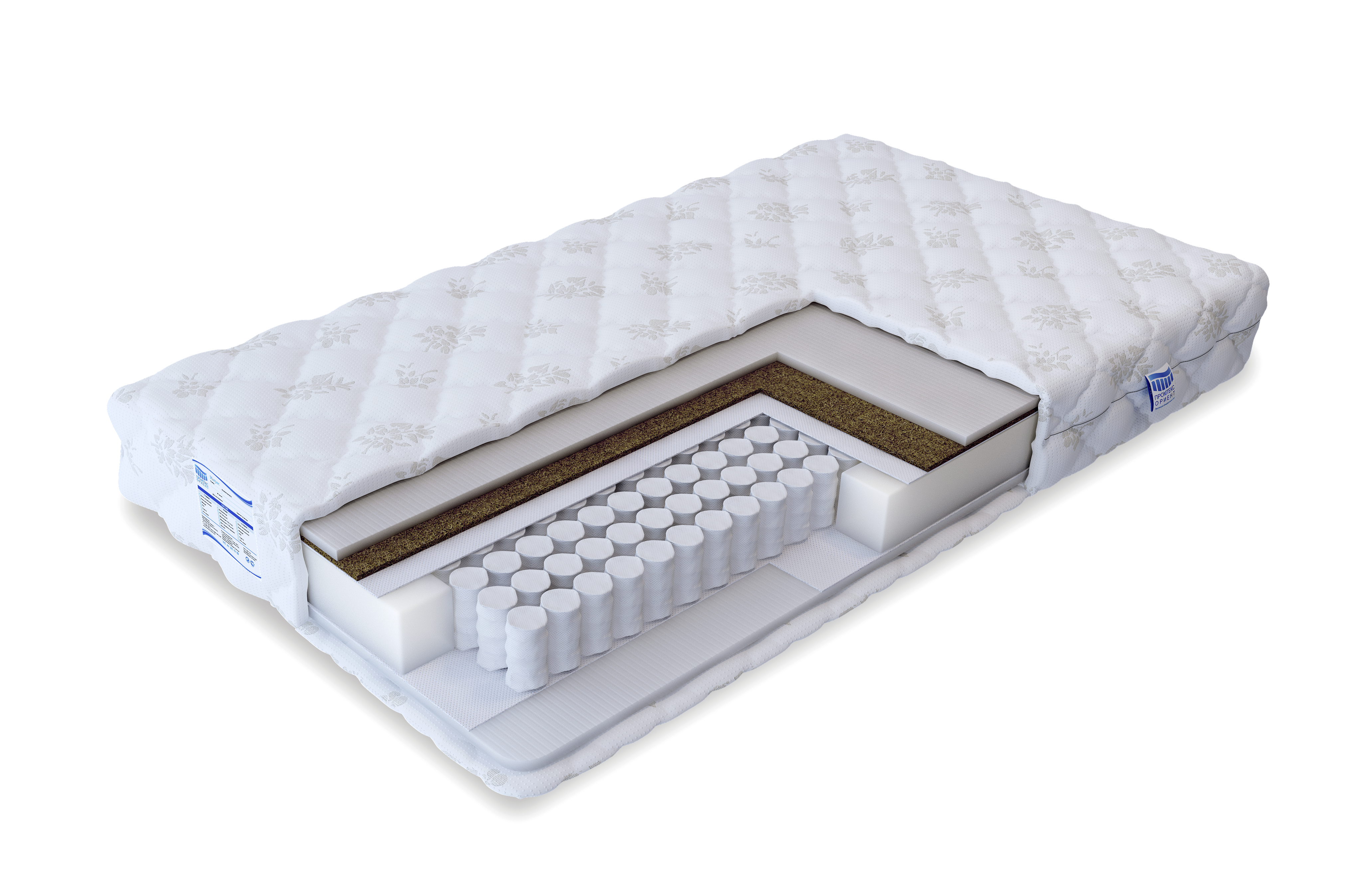 Матрас имеет стороны разной жёсткости. Основанием служит блок независимых пружин TFK. Пружины работают независимо друг от друга и только те, на которые идет нагрузка. Правильное распределение давления помогает позвоночнику принять анатомическое положение.