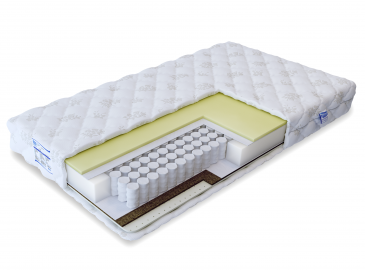 Матрас имеет среднюю степень жесткости сторон. В основании находится система независимых пружин TFK. Пружины правильно распределяют нагрузку, точечно подстраиваются под позвоночник и имеют прекрасный ортопедический эффект.