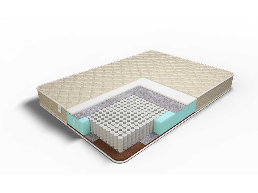 Недорогой и невысокий матрас Promo Eco2-Cocos2 S1000 с кокосовой койрой и улучшенным независимым пружинным блоком для правильного распределения нагрузки на спальное место.
