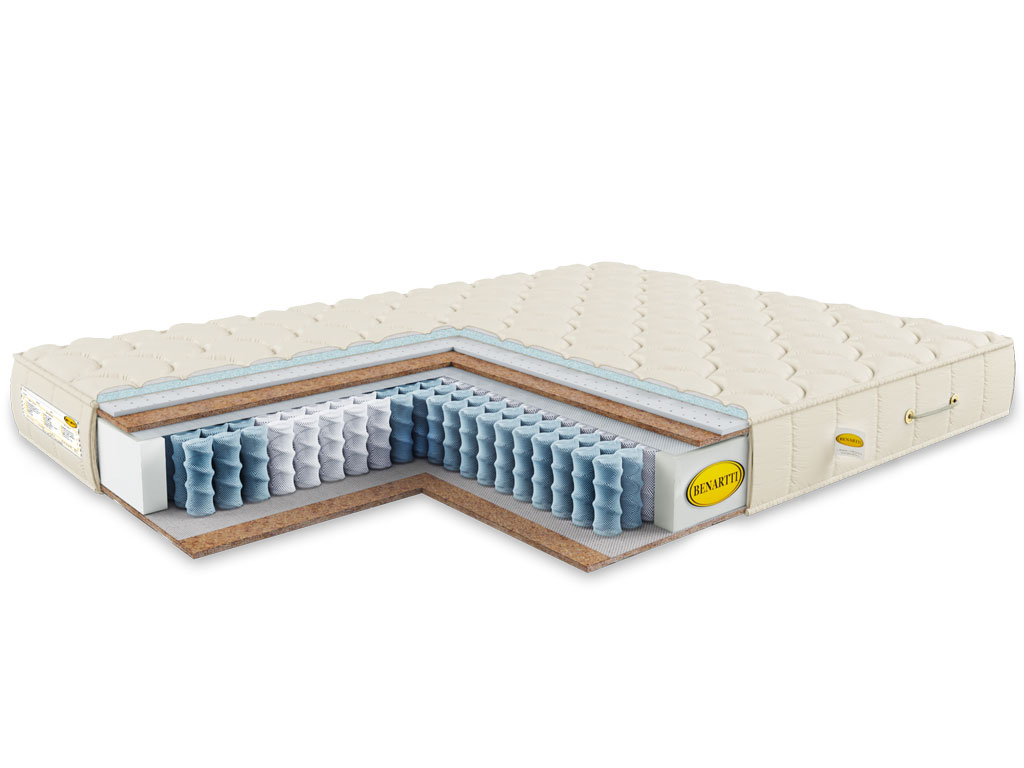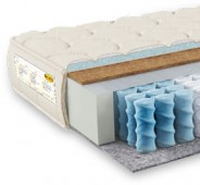С одной стороны матраса расположен слой натурального латекса высотой 1 см, обладающий ортопедическим эффектом и износостойкими свойствами и слой кокосовой койры толщиной 1 см, придающий дополнительную жесткость и долговечность матрасу.