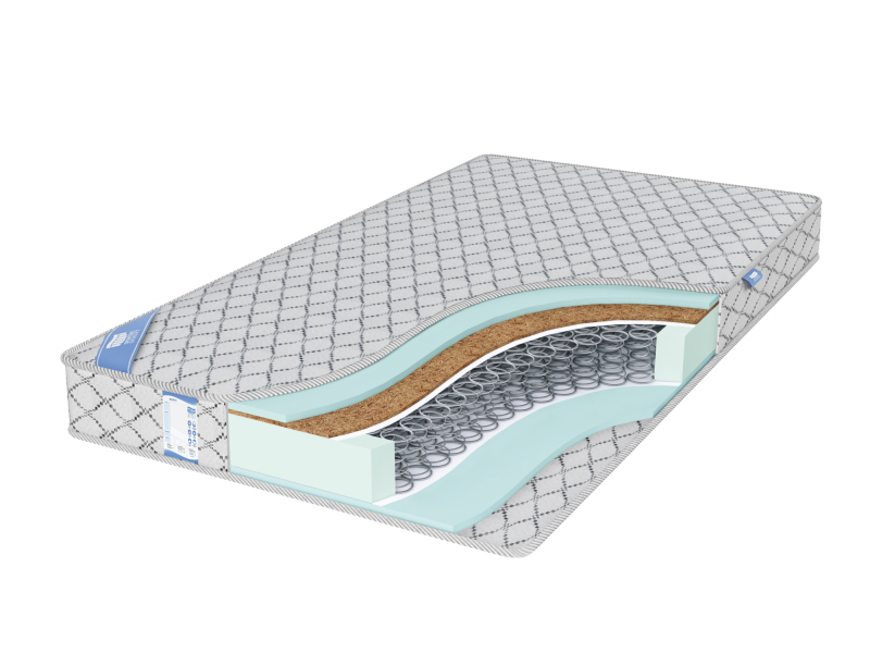 Слои дают телу оптимальную ортопедическую поддержку. Пена дарит изделию мягкость, распределяя нагрузку по поверхности. Зависимые пружины (120 шт./м²) отвечают за упругость матраса, а кокосовая койра создает нужную жесткость.