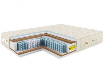 С одной стороны матраса расположен слой искусственного латекса высотой 2 см, обладающий ортопедическим эффектом и износостойкими свойствами и слой кокосовой койры толщиной 3 см, придающий дополнительную жесткость и долговечность матрасу.