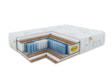 Пружины данного блока расположены в шахматном порядке относительно друг друга. Такое расположение пружин придает лучшие ортопедические свойства, повышает срок службы и допустимую нагрузку. В матрасе применяются натуральные наполнители латекс и латексированная кокосовая койра. Матрас является двусторонним, одна сторона средней жесткости, другая немного более жесткая, это позволит выбрать удобную для себя сторону. Матрас снабжен четырьмя ручками для удобства переворачивания, а также аэраторами для дополнительной вентиляции слоев.