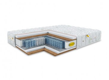 Пружины данного блока расположены в шахматном порядке относительно друг друга. Такое расположение пружин придает лучшие ортопедические свойства, повышает срок службы и допустимую нагрузку. В матрасе применяются натуральные наполнители латекс и латексированная кокосовая койра. Матрас является двусторонним, одна сторона средней жесткости, другая немного более жесткая, это позволит выбрать удобную для себя сторону. Матрас снабжен четырьмя ручками для удобства переворачивания, а также аэраторами для дополнительной вентиляции слоев.