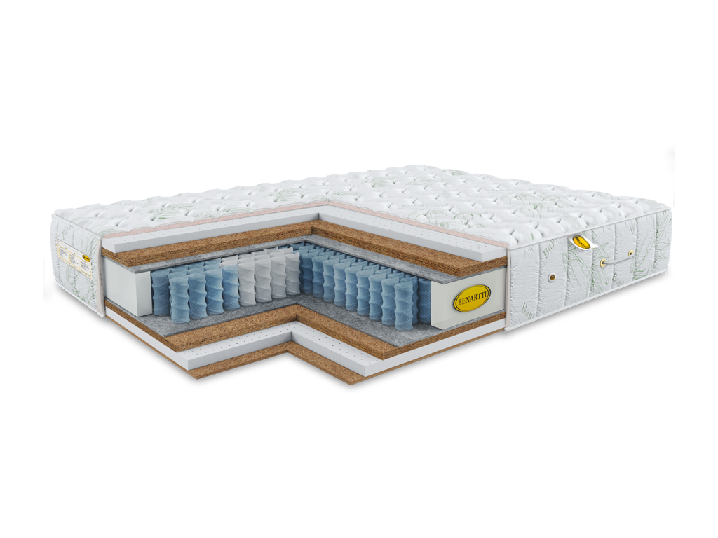 У матраса Benartti Memory Mega Comfort Duo S1200 уникальный трикотажный чехол Bamboo стеганный на 2 см Memory и 100 гр. синт., что придает ему неповторимые тактильные ощущения. Когда говорят "спать, как на облаке" - это про этот матрас.
