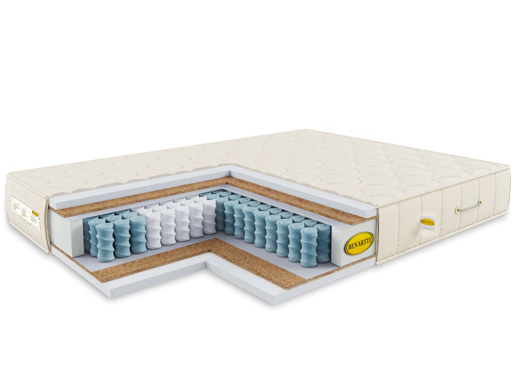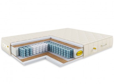 С каждой стороны расположен слой кокосовой койры толщиной 1 см , придающий дополнительную жесткость и долговечность матрасу и поверх слой искусственного латекса высотой 3 см, обладающий ортопедическим эффектом и износостойкими свойствами.