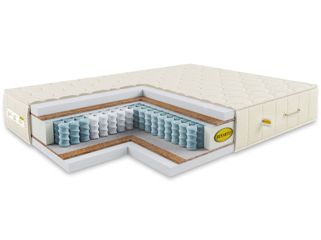С каждой стороны расположен слой кокосовой койры толщиной 1 см , придающий дополнительную жесткость и долговечность матрасу и поверх слой искусственного латекса высотой 5 см, обладающий ортопедическим эффектом и износостойкими свойствами.