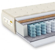 С одной стороны матраса расположен слой кокосовой койры толщиной 1 см, придающий дополнительную жесткость и долговечность матрасу и поверх слой искусственного латекса высотой 3 см, обладающий ортопедическим эффектом и износостойкими свойствами.