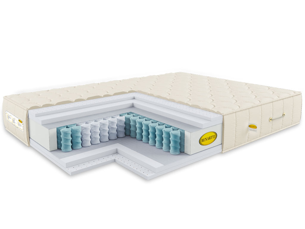 Для дополнительной защиты пружинного блока добавлен изоляционный слой из спанбонда, разделяющий наполнители матраса и пружины.