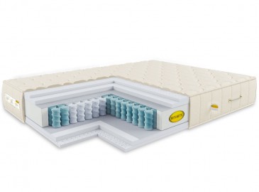 С каждой стороны расположен слой натурального латекса высотой 2 см, обладающий ортопедическим эффектом и износостойкими свойствами, в сочетании с искусственным латексом 3 см, который добавляет матрасу необходимую упругость.