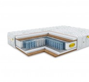 С каждой стороны расположен слой натурального латекса высотой 3 см, обладающий ортопедическим эффектом и износостойкими свойствами, в сочетании с искусственным латексом 3 см, который добавляет матрасу необходимую упругость.