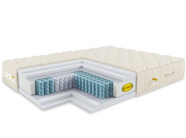 С каждой стороны расположен слой натурального латекса высотой 2 см, обладающий ортопедическим эффектом и износостойкими свойствами, в сочетании с искусственным латексом 3 см, который добавляет матрасу необходимую упругость.