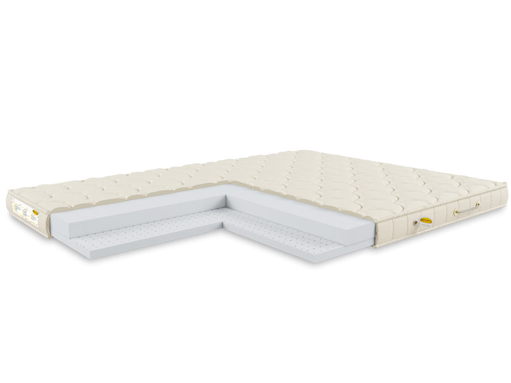 Матрас является беспружинным, основой служит экологически чистый материал средней жесткости искусственный латекс высотой 6 см. С одной стороны добавлен слой натурального латекса высотой 3см, усиливающий ортопедические свойства, комфорт и продлевающий долговечность матраса.