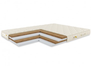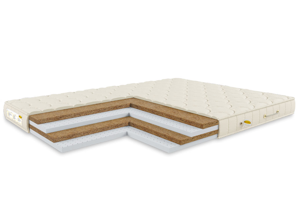 Матрас является беспружинным, основой служит чередование слоев натурального латекса высотой 3 см и латексированной кокосовой койры толщиной 3 см, придающий дополнительную жесткость и долговечность матрасу. Такое сочетание делаем матрас очень удобным и долговечным.
