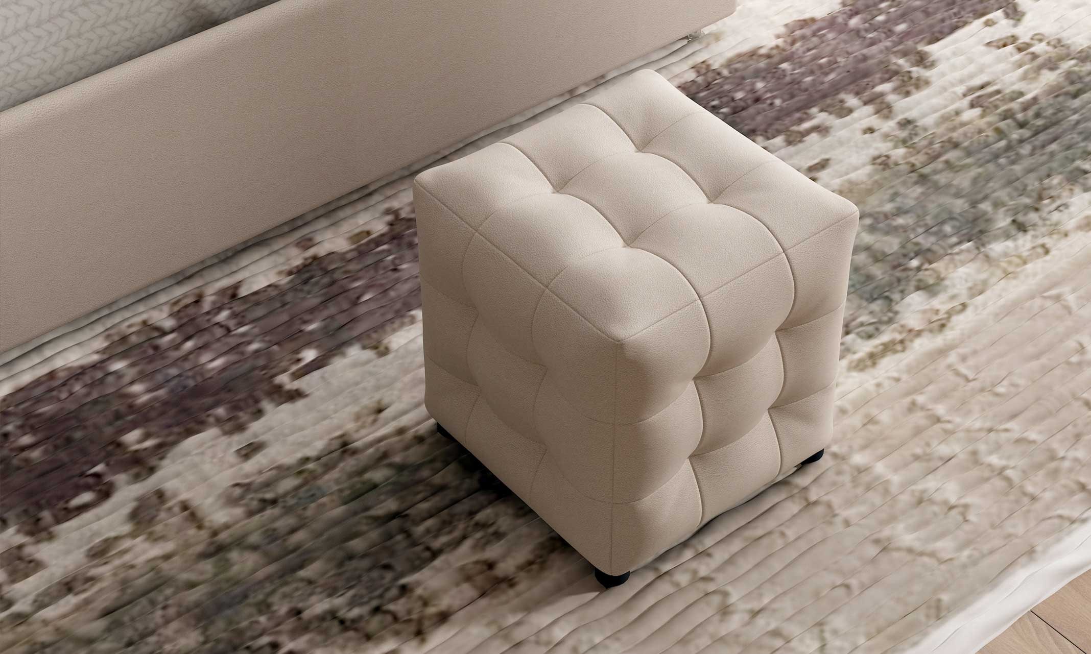 Стильный и удобный пуф. Корпус выполнен из ДСП и МДФ. Со всех сторон пуф покрыт обивочным материалом. Дополнит любую кровать из нашей коллекции. На пуф можно положить белье и покрывало от вашей кровати. Он прекрасно впишется в любой интерьер.