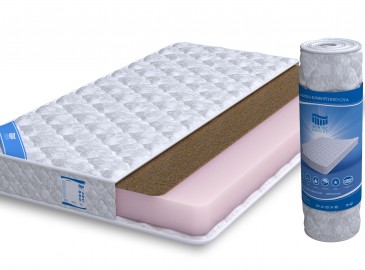 Этот беспружинный двусторонний матрас имеет комбинированную жёсткость сторон: умеренно жёсткую с одной стороны и среднюю – с другой. Основой матраса служит розовая моноплита из искусственного латекса, пористая структура которого имеет высокую плотность и таким образом обеспечивает эластичную поверхность, которая подстраивается под изгибы вашего тела. Ортопедические свойства повышает слой из кокосового волокна, который используется в этой модели для снятия нагрузки на позвоночник во время сна.