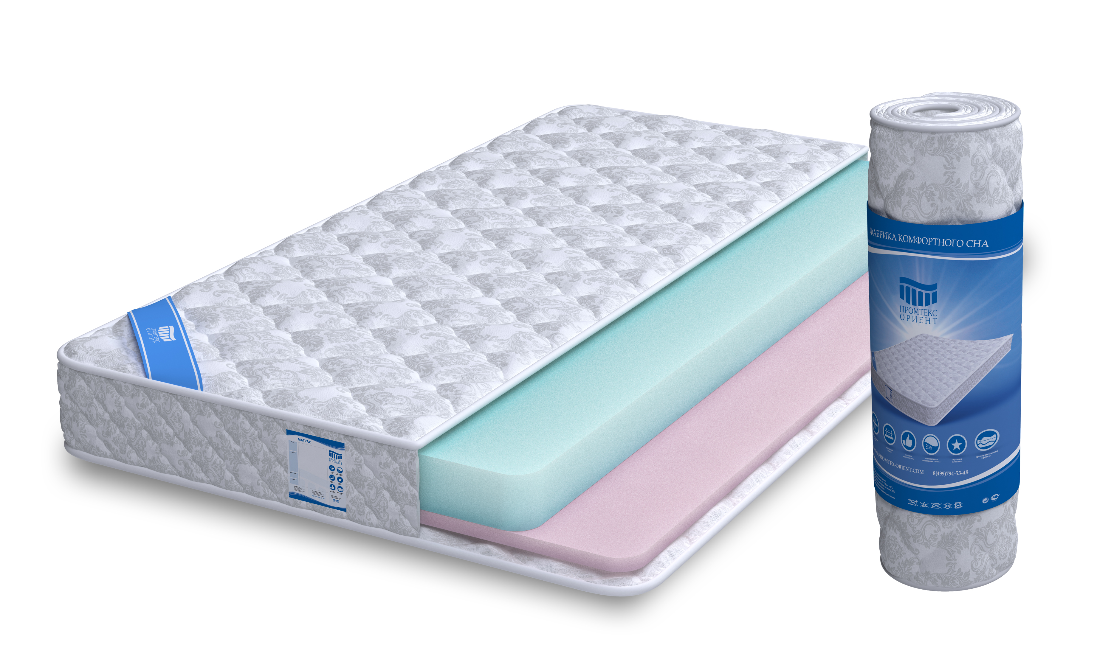 Тонкий беспружинный матрас корректирует жёсткость спального места, делает более ровной поверхность дивана или раскладушки. Удобство в том, что он сворачивается в тугой рулон. Эта особенность серии Roll выручит вас при переезде или ремонте. Матрас средней жёсткости, но спать на нём комфортно, поскольку чехол из трикотажа простёган на синтепоне.