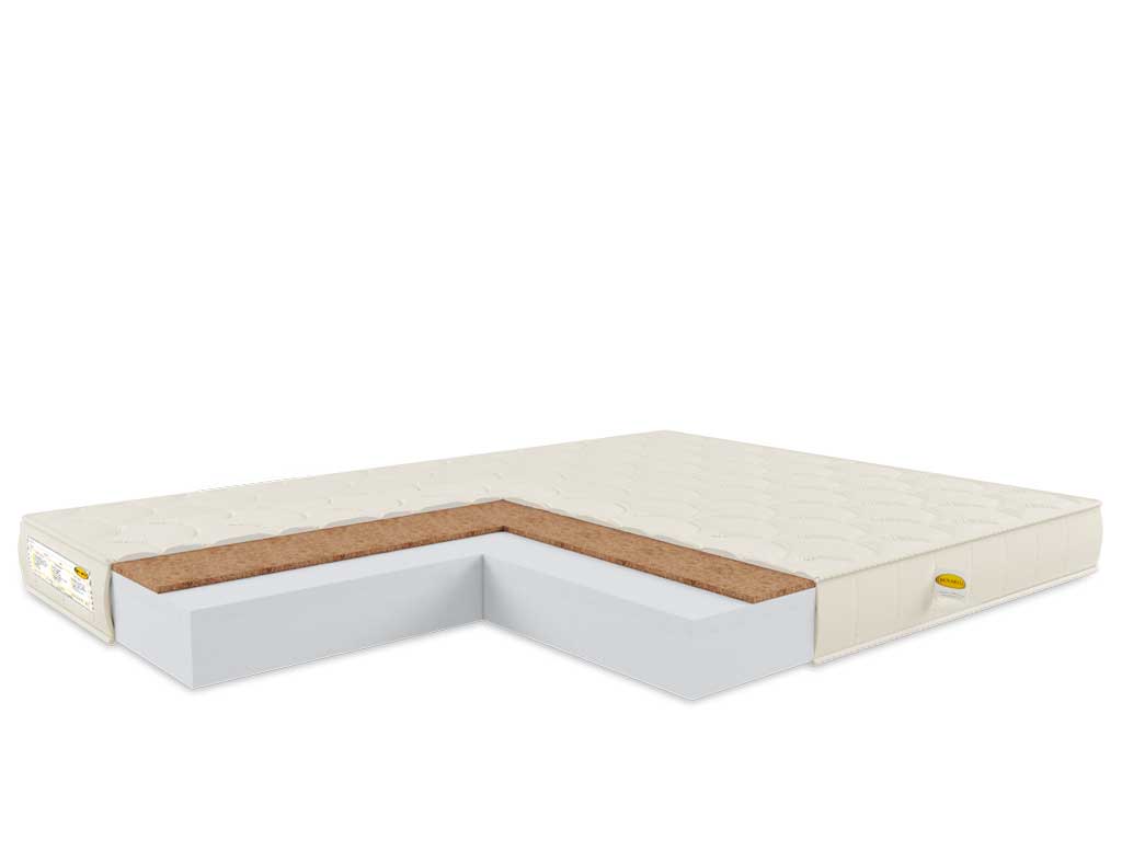 С одной стороны добавлен слой латексированной кокосовой койры, что придает дополнительную жесткость и долговечность матрасу.