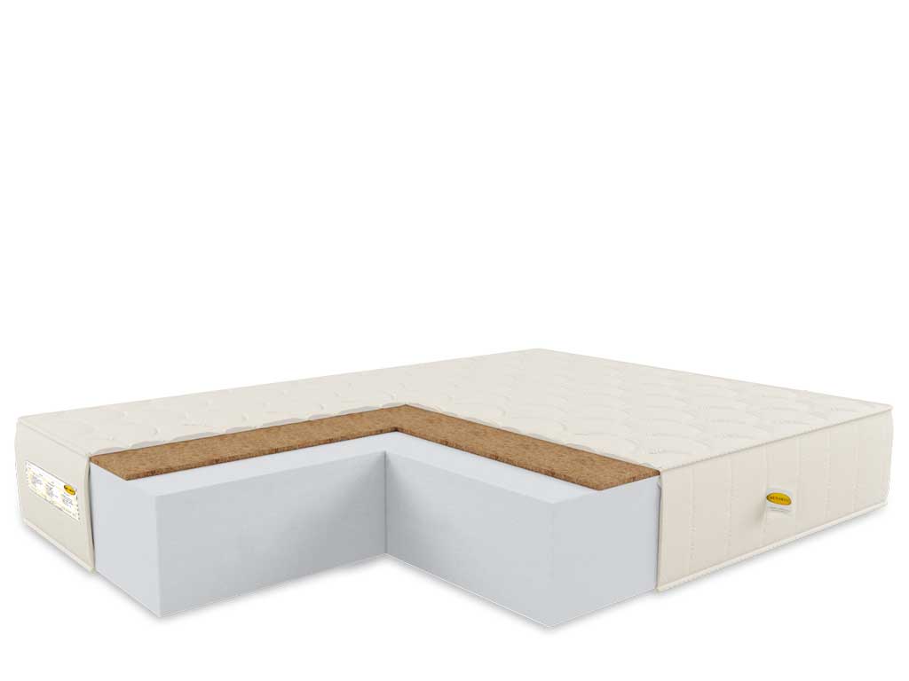С одной стороны добавлен слой латексированной кокосовой койры, что придает дополнительную жесткость и долговечность матрасу.