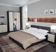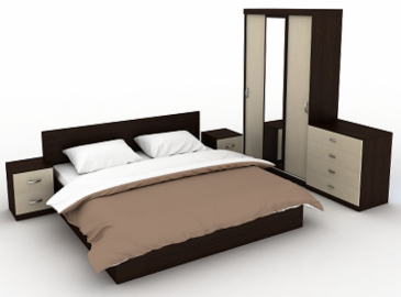 Современный спальный гарнитур "MidNight". Изготовлен из ЛДСП 16мм. Корпуса предметов выполнены из темной текстуры Венге. Фасады исполнены из светлой текстуры Дуб Белфорд.
