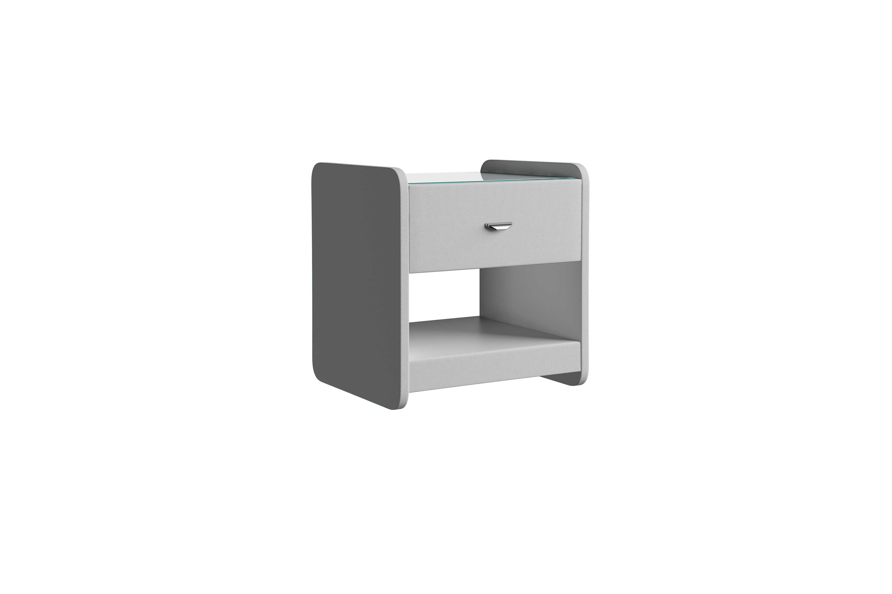 Стильная и практичная тумба прекрасно дополняет собой любой интерьер. Тумба с выдвижным ящиком и полкой может выполняться в 43 вариантах цветового исполнения из эко-кожи, велюра, глазго, вельвета, микровелюра и шинилла. Для удобства использования и продления срока эксплуатации, рекомендуется использовать стеклянную накладку. Накладка используется в качестве столешницы для тумбы и защищает ее от повреждений и загрязнений.