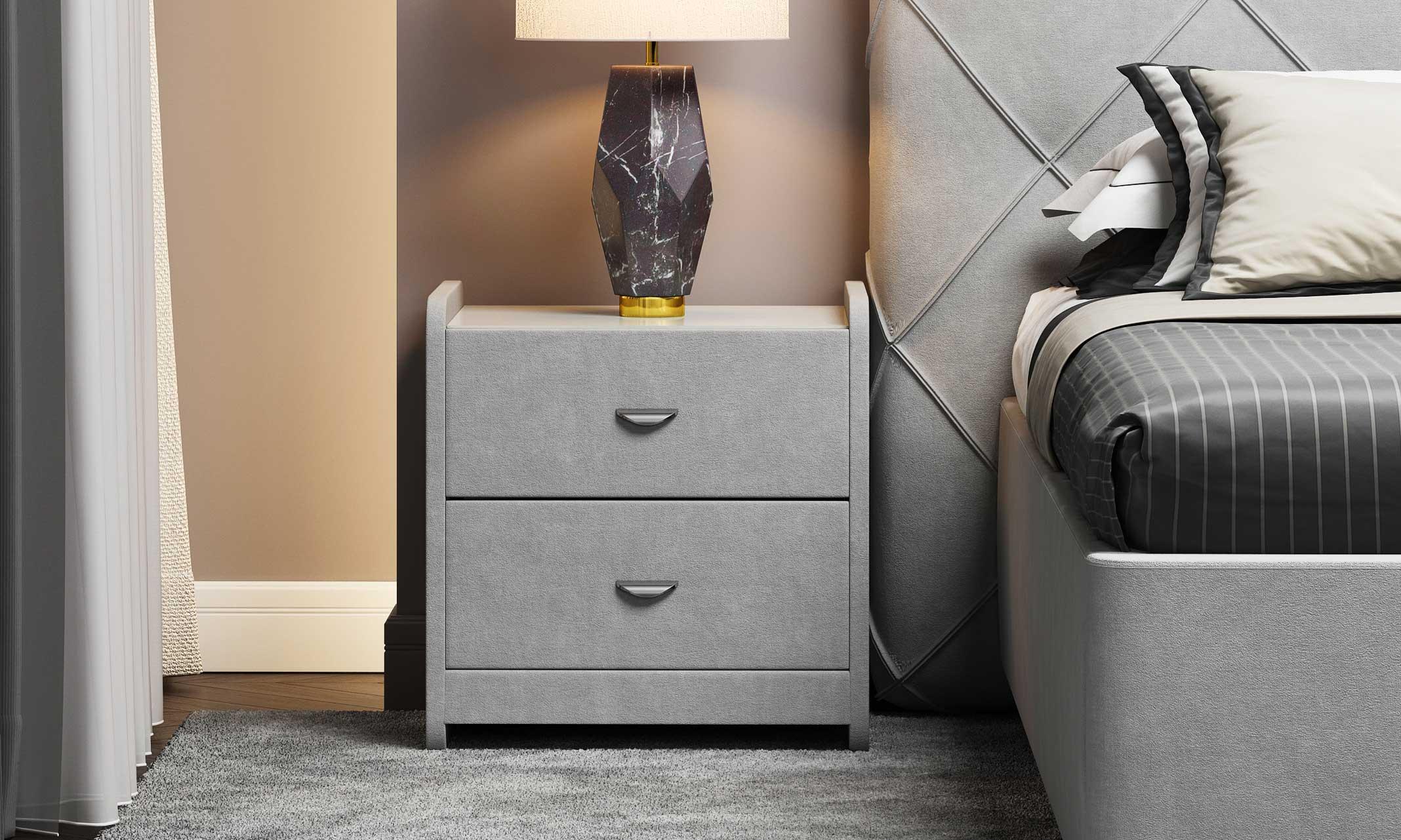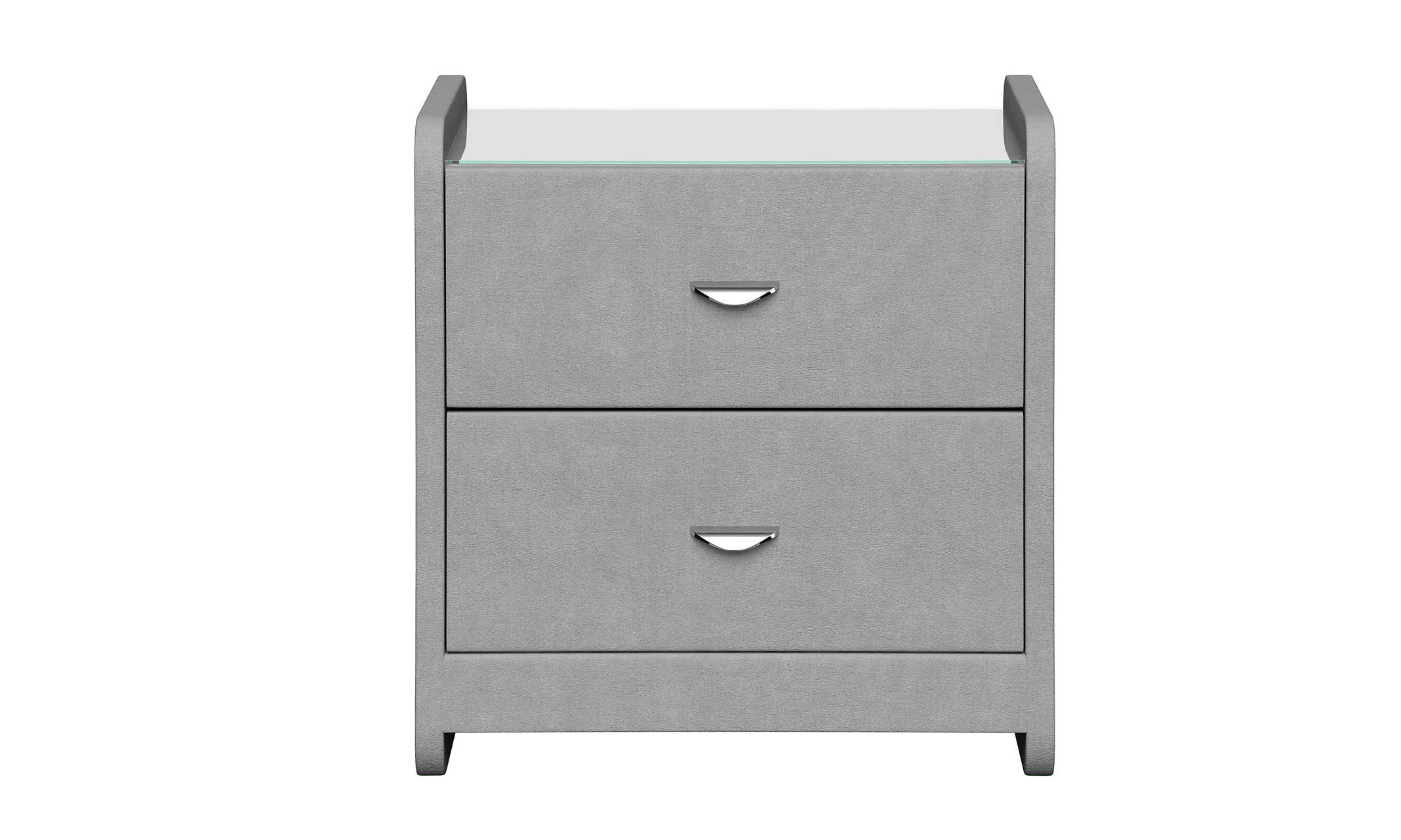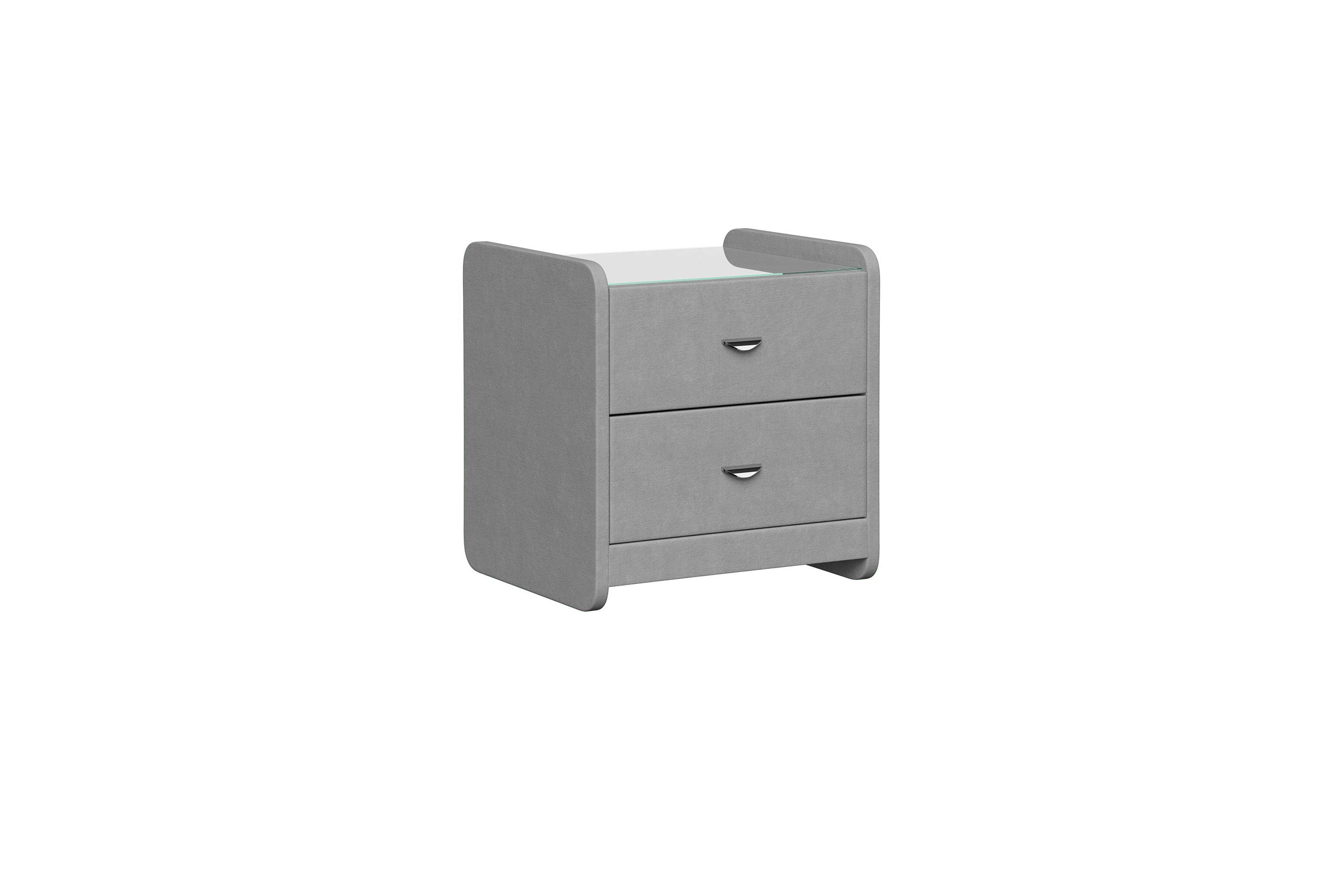 Стильная и практичная тумба прекрасно дополняет собой любой интерьер. Тумба с двумя выдвижными ящиками может выполняться в 43 вариантах цветового исполнения из эко-кожи, велюра, глазго, вельвета, микровелюра и шинилла. Для удобства использования и продления срока эксплуатации, рекомендуется использовать стеклянную накладку. Накладка используется в качестве столешницы для тумбы и защищает ее от повреждений и загрязнений.